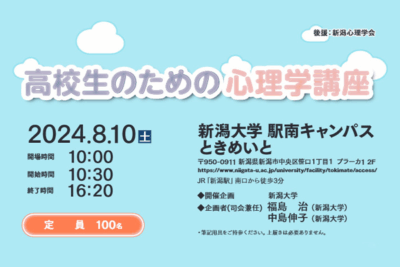 日本心理学会「高校生のための心理学講座」8月10日新潟開催