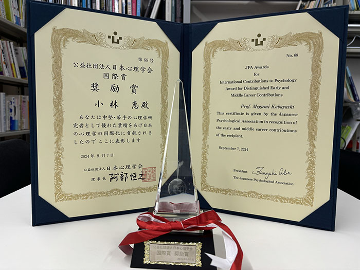 小林恵准教授(知覚発達心理学)が日本心理学会 第19回国際賞奨励賞を受賞しました。