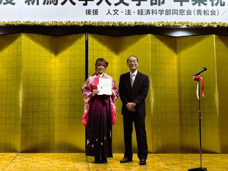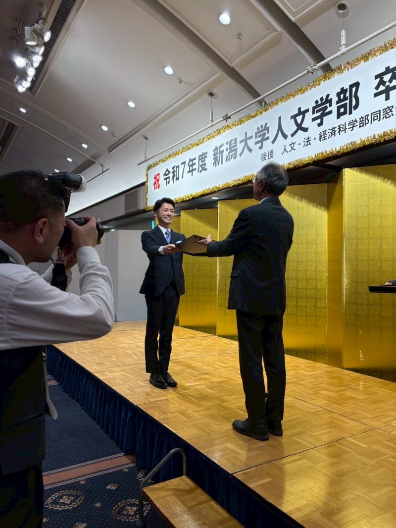 2026年3月23日、全学の卒業式に続き、新潟グランドホテル「悠久の間」にて、2025年度人文学部卒業祝賀会が開催されました。