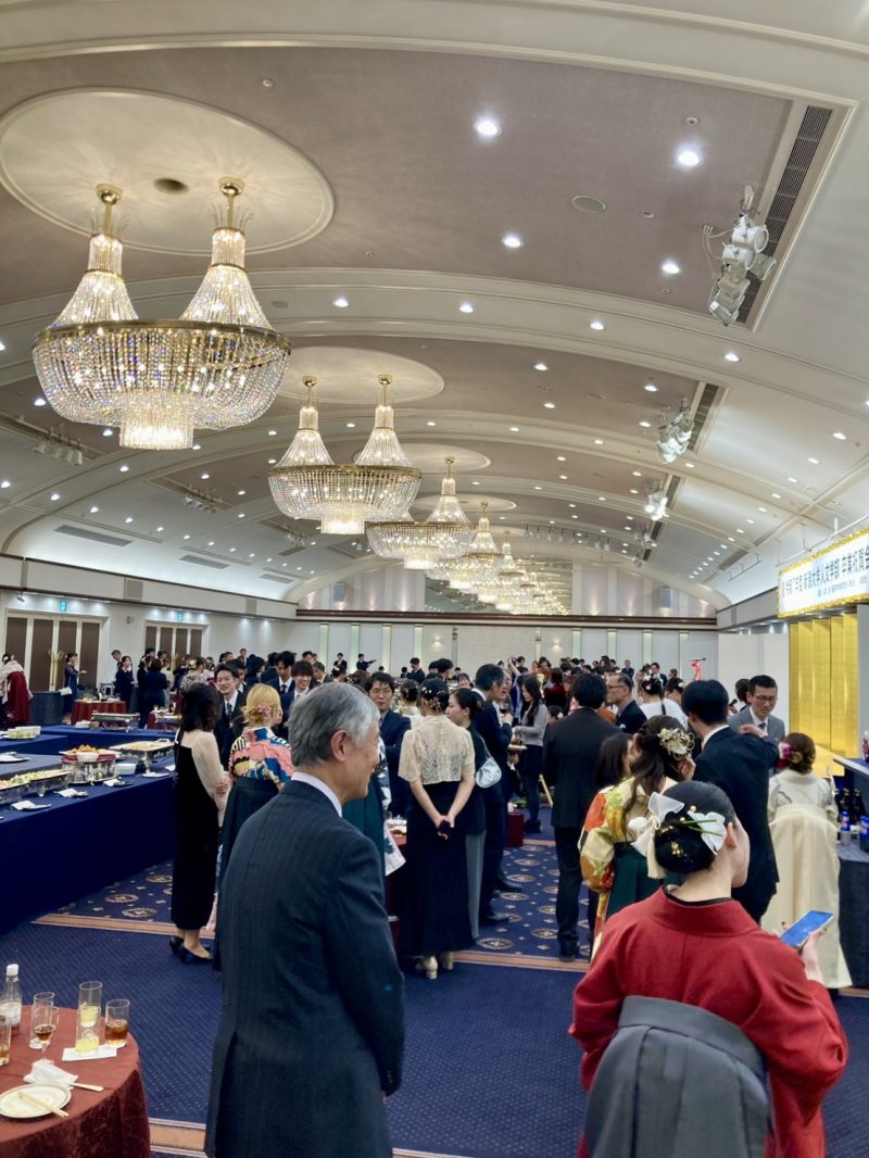 会場のあちこちでは、手にした学位記の重みを感じながら、大学生活を共にした仲間や恩師と語らう姿が見られました。学問と向き合い、思索を深めた日々を振り返りつつ、ここで育まれた絆を確かめ合う、希望に満ちた門出のひとときとなりました。