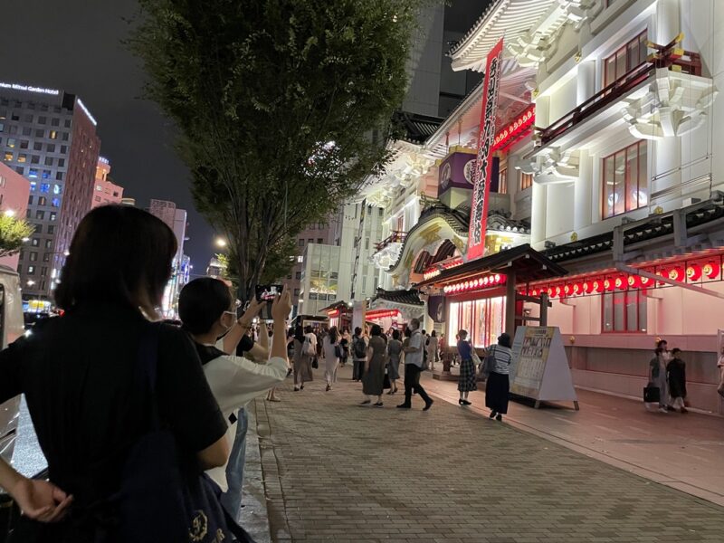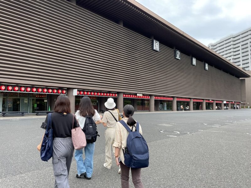 実習の期間は、令和5年9月20、21日の2日間でした。初日は、大相撲秋場所が行われていた国技館周辺を巡りました。また夕方からは歌舞伎座の「秀山祭九月大歌舞伎」(夜の部)を鑑賞しました。